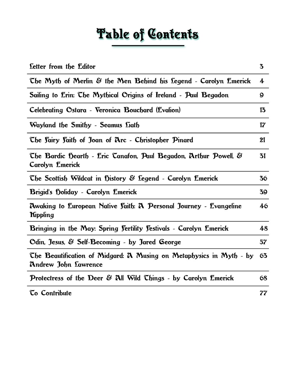 This issue is packed with a wonderful cross section of European mythos, from legends, to mythology, to how folk belief turns up in historical accounts. This journal will take you on a fascinating journey into the legends, lore, beliefs, and customs of our European ancestors!